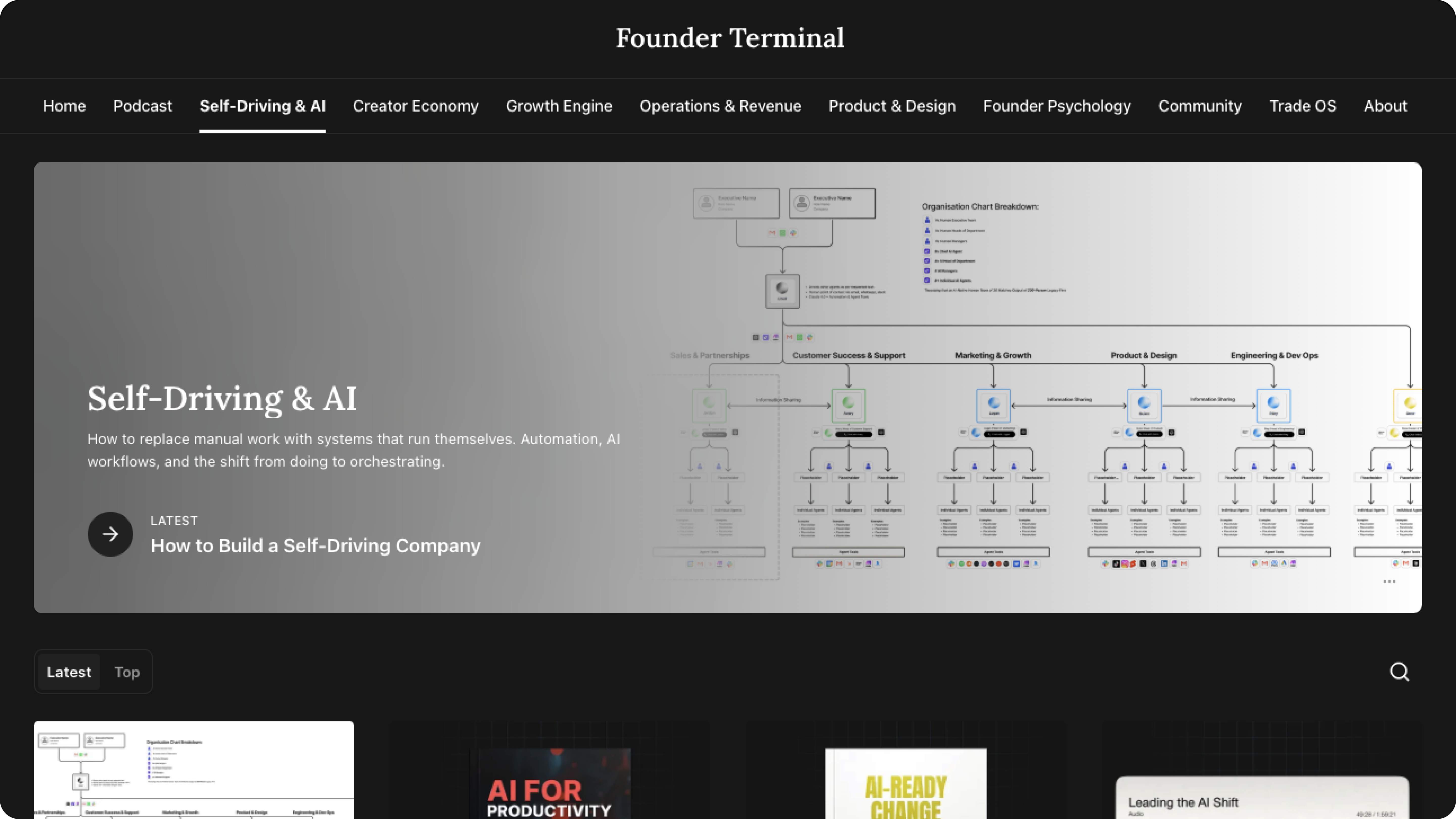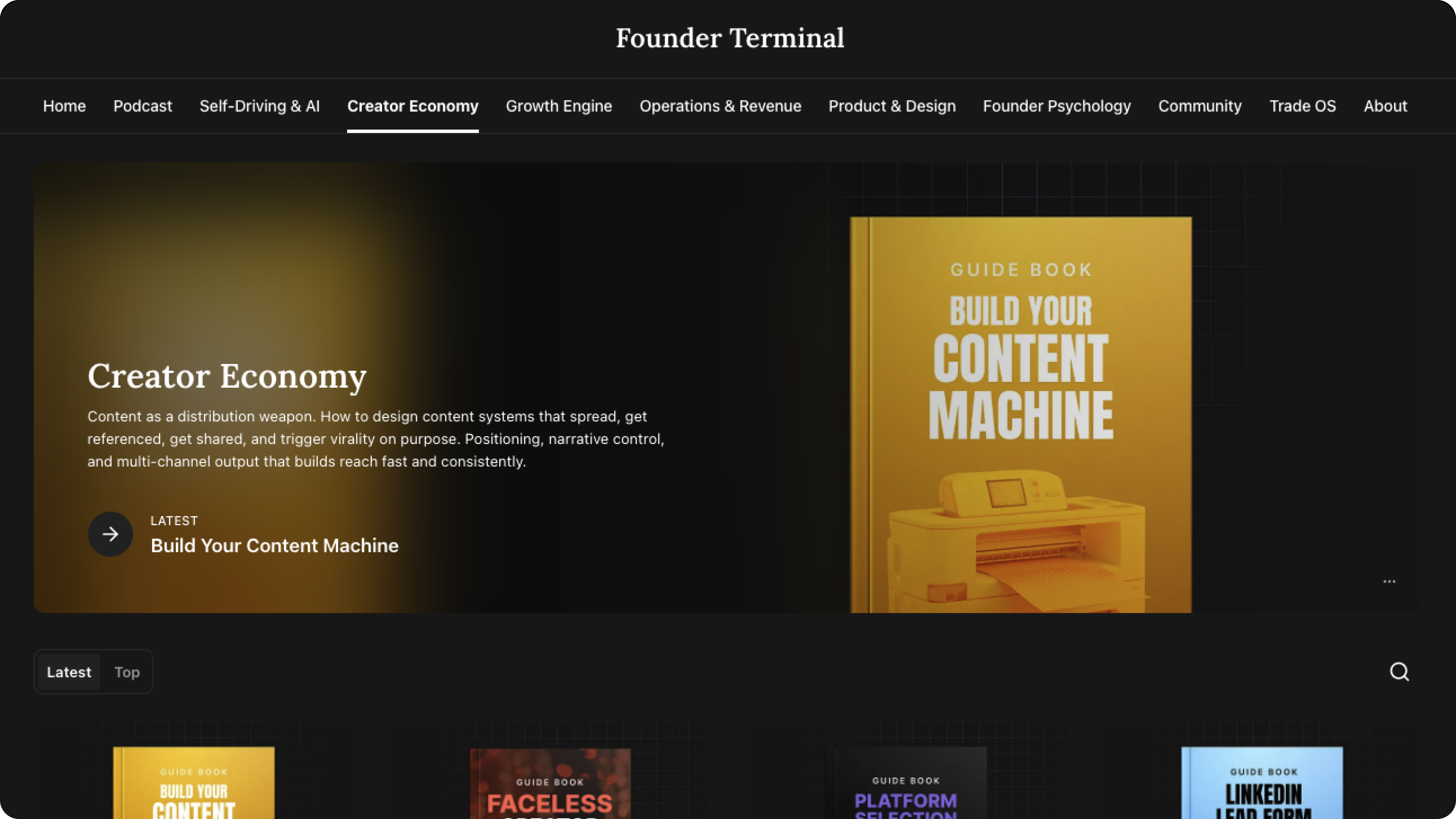 Founder Terminal provides free resources covering viral content structures, growth systems, revenue models, operational clarity, and building autonomous organizations.